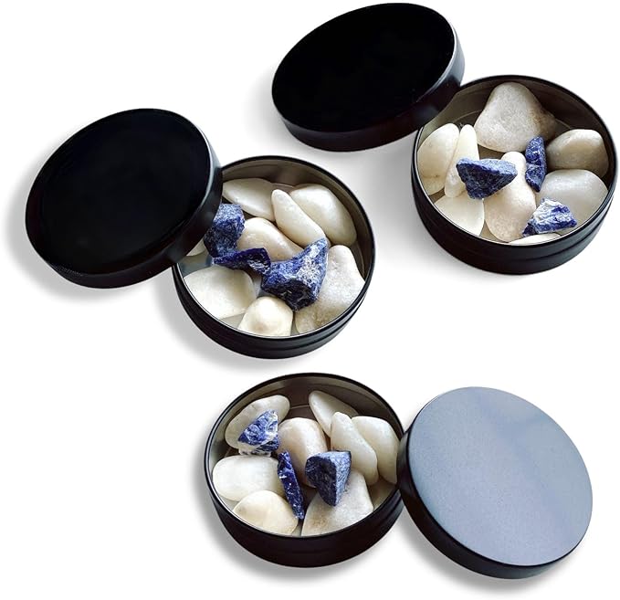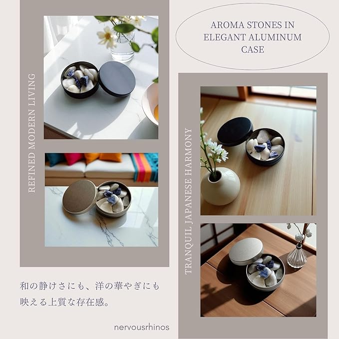 おしゃれなblackのアルミケース 3セットに天然石のアロマストーンのセットです。 アロマストーンとしてご使用されないお客様にはおすすめしておりませんのでご注意ください。