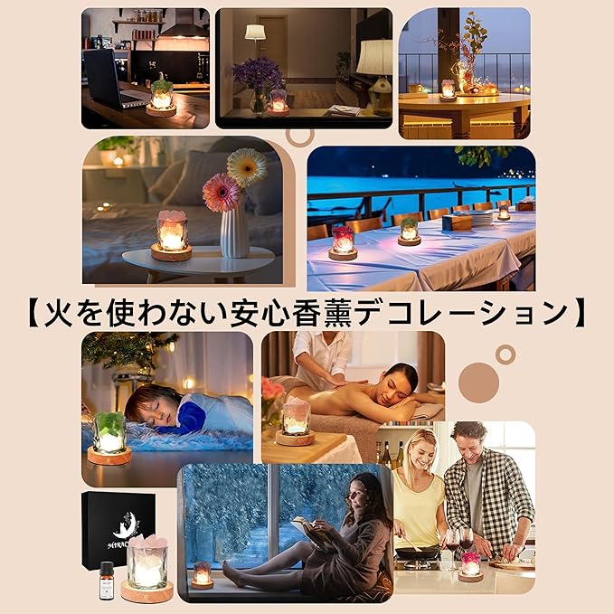 高級ギフトボックスに3ヶ国語の説明書付きで贈り物に最適。全シーン対応のムードライトは安眠・集中・入浴時にも使え、柔らかな光と香りで癒しの時間を演出します。