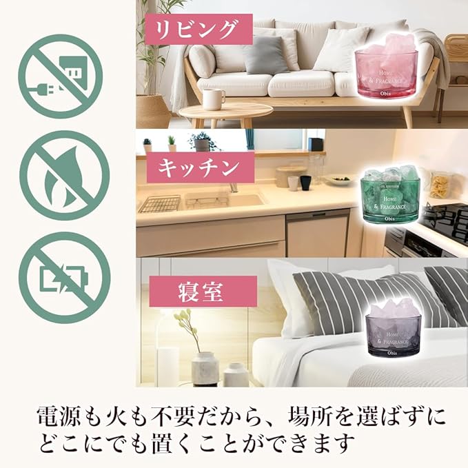 【届いたらすぐに使用可能】このストーンディフューザーに用いられる天然石は液体を効果的に吸収し、その香りをじんわりと時間をかけて自然に拡散させる役目を果たします。電源も火も不要であるため、コンセントの位置を気にせず自由な場所に置くことができ、届いたその日からすぐにリラックスできる環境を作り上げることが可能です。