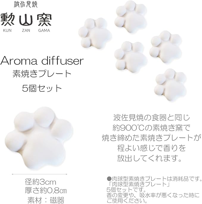 J-kitchens 勲山窯 肉球 型 アロマ プレート 5個 (アロマストーン) 波佐見焼(勲山窯 アロマデュフューザー用) 約Φ3x0.8cm