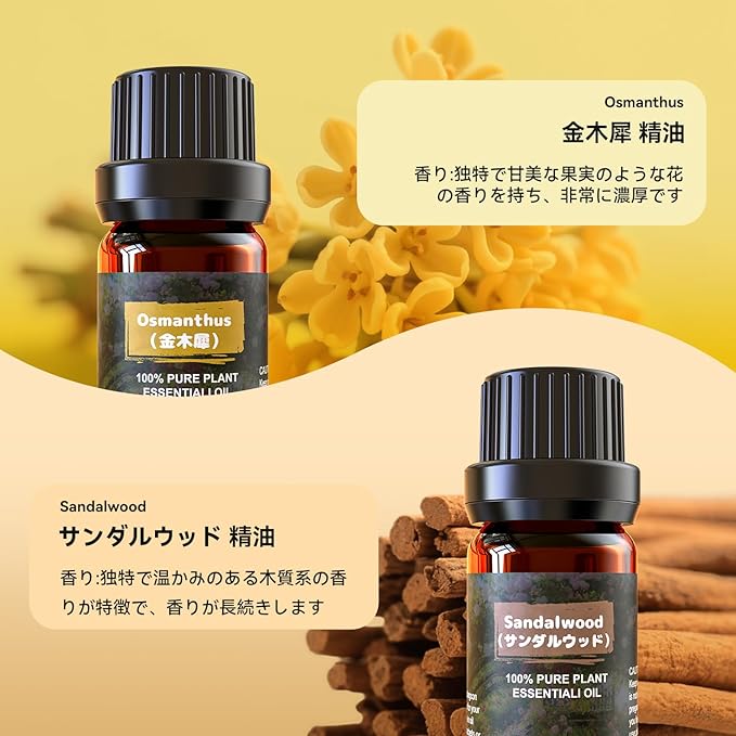 アロマオイル 精油 エッセシャンオイル 純天然抽出 アロマディフューザー用 加湿器用 アロマストーン用 プレゼントに最適 Essential Oil (ラベンダー/イランイラン/金木犀/フランキンセンス/ローズマリー/サンダルウッド)