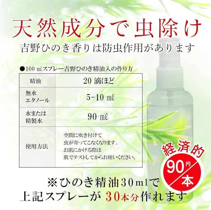 ひのき専門店の天然精油 吉野ヒノキ精油 100ml 環境省認可 かおり研究会厳選ひのき エッセンシャルオイル 檜アロマ ひのきアロマ 檜の香り 睡眠