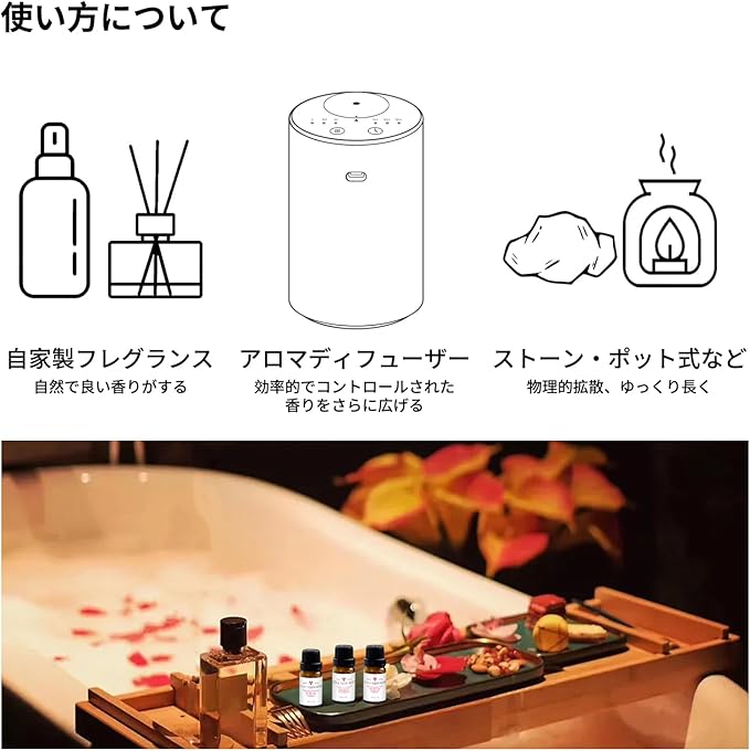 「心地よいアロマの旅へのエッセンシャルオイルセット」3本10mlセットで、単一な香りをお楽しみだけではなく、香水のようにトップノート、ミドルノート、ボトムノートの香りの違いを感じることができます。厳選された天然素材を使用し、優れた品質を保っています。アロマディフューザー、アロマストーン、加湿器、アロマポットなどとの併用もOKです