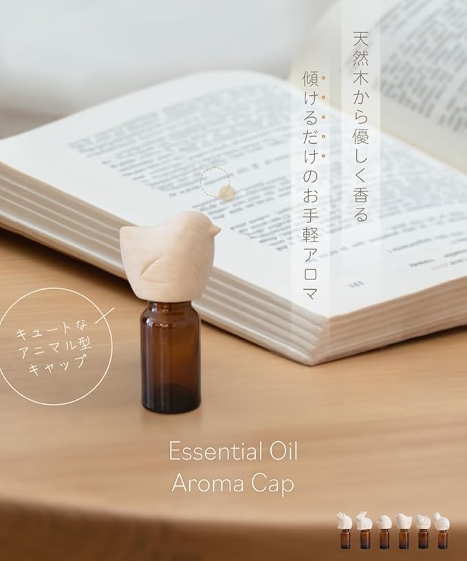 【エッセンシャルオイルを入れて傾けるだけ】 精油瓶付き アロマキャップ 天然木 水不要 気化式 アロマディフューザー 10ml アニマル パーソナルスペース 鳥 バード Bird
