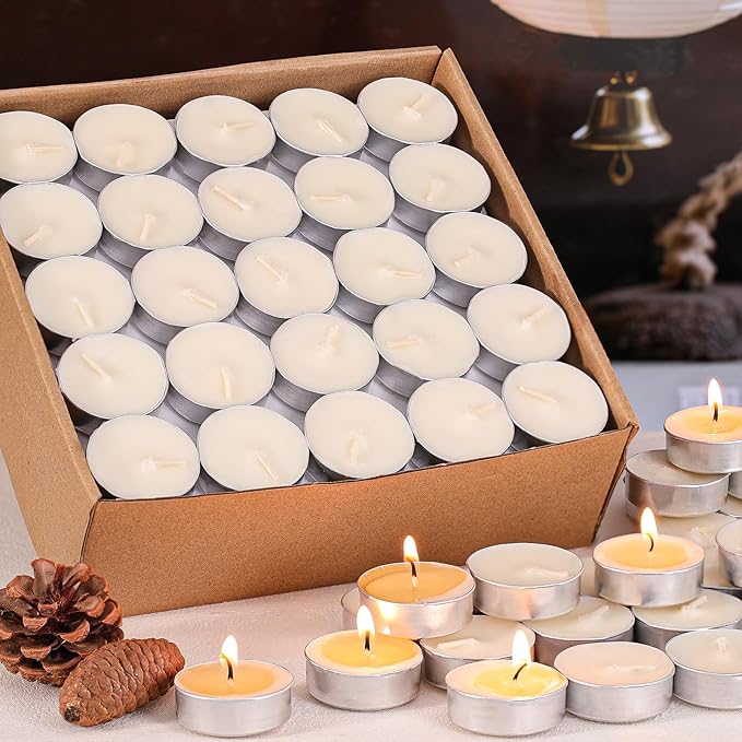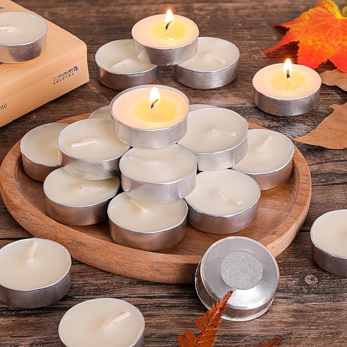 LETINE ティーライトキャンドル 100個 アルミカップ 4時間燃焼 無煙 無香料 ろうそく 植物性 仏壇、 茶香炉、アロマポット用蝋燭 大容量 溶け残りなし