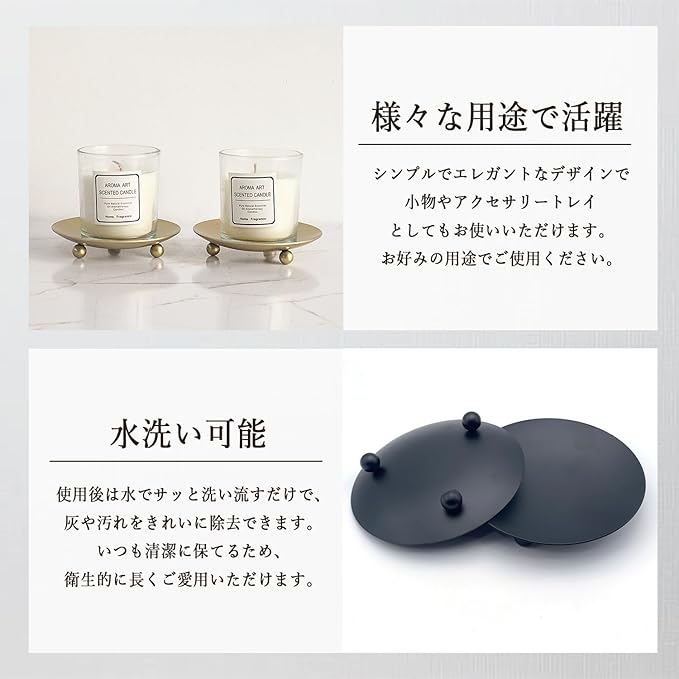鉄製で適度に重量があるので安定する:重厚感のある鉄製のお香受け皿は、しっかりと安定感があります。風がある場所やペット、子供がいるご家庭でも、お香受け皿が簡単に動くことはありません。安心してお使いいただけるデザインで、どんなインテリアにも馴染みます。