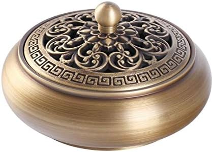 香炉(机上香炉) 香炉皿 お香立て 丸香炉 銅香炉 銅器 アンティーク調 蓋付き お香立て付き (真鍮色)