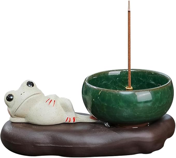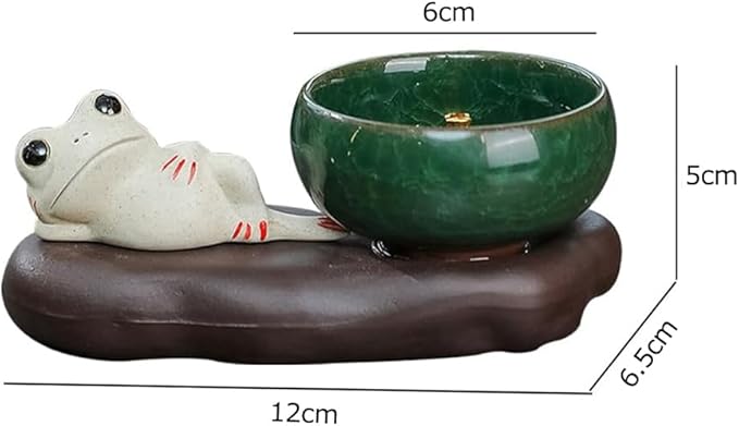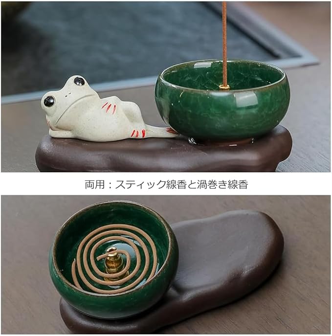 HIGHAWKお香立て 香炉 スティック線香・渦巻き線香両用 カエル かわいい 陶器 置物 書斎 瞑想 睡眠 インテリア(カエルC)