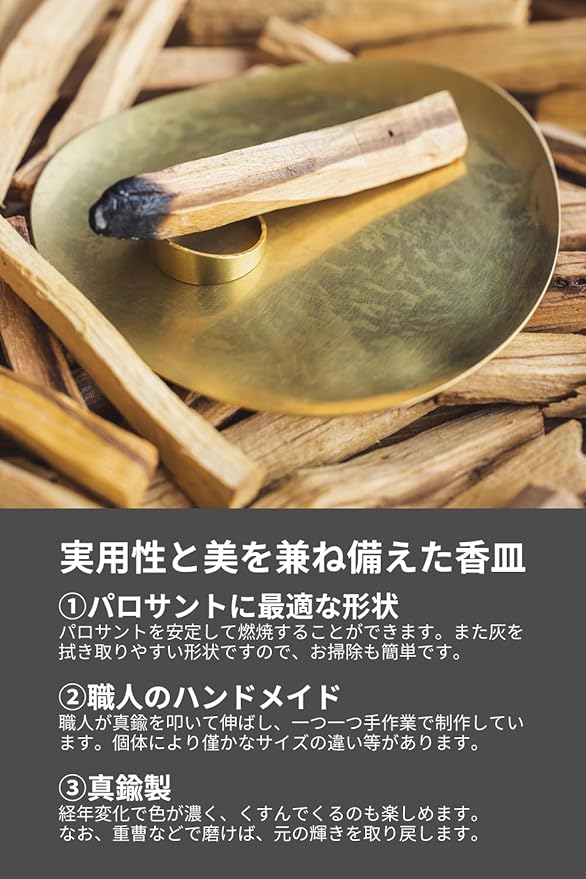 【一つ一つ職人が手作り】#Divina 真鍮製 パロサントプレート 香炉 インセンスホルダー 金工細工 香立て