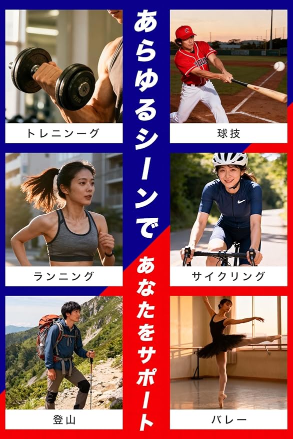 【ちょうどいい伸縮性で関節・筋肉サポート】伸縮バランス設計により、関節や筋肉の動きにしなやかにフィット。締め付けすぎず、自然な動きを妨げないため、サッカー、バスケットボール、バレーボール、テニス、ゴルフ、マラソンなど幅広いスポーツで快適に使用できます。関節の安定感をプラスし、パフォーマンス維持をサポートします。