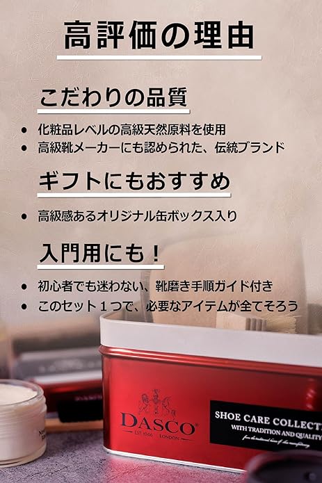 [Dasco] [ダスコ] 専門家絶賛 英国伝統品質 クリーム2色 靴磨きセット シューケア コンプリート (PA-DSZP) 革靴 手入れ セット 初心者 かんたん 黒 無色