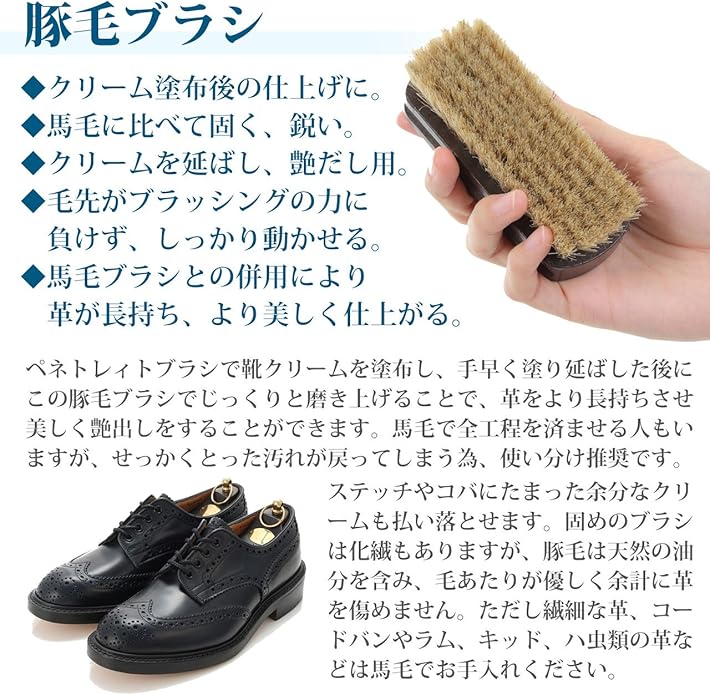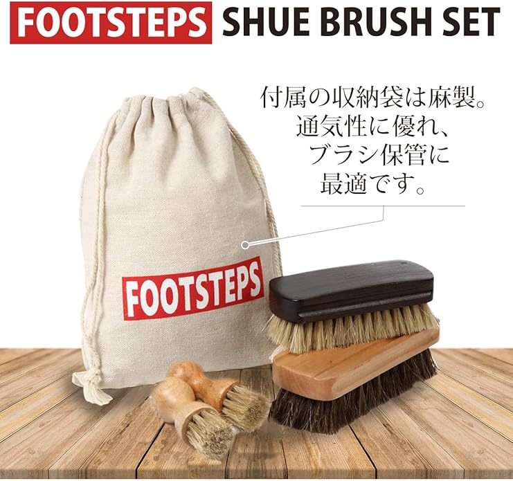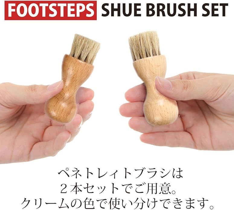 FOOTSTEPS 靴磨きセット 馬毛ブラシ 豚毛ブラシ ペネトレイトブラシ 2本