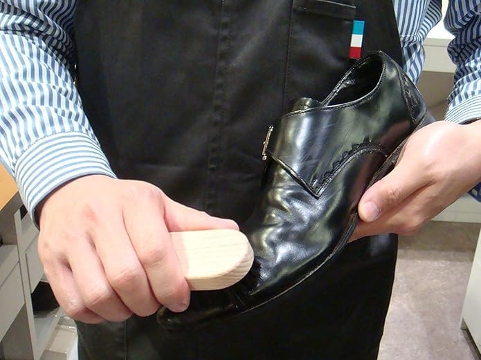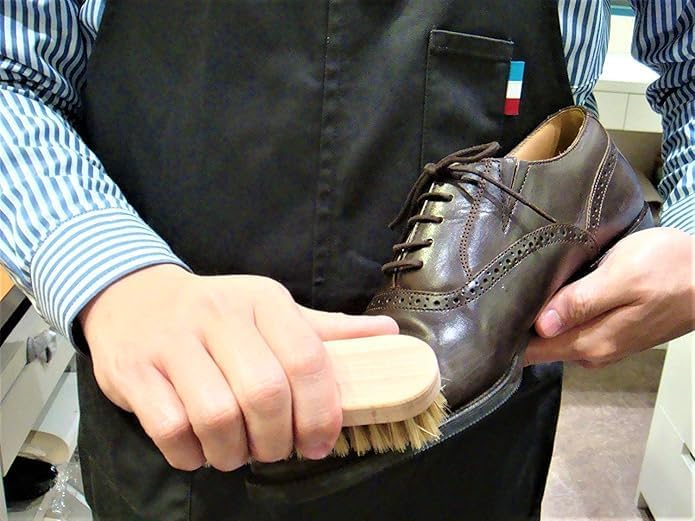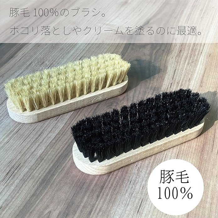 【より美しく】豚毛ブラシでクリームを塗るのが最適 豚毛ブラシでブラッシングすると革への浸透度が変わりより靴が輝きます