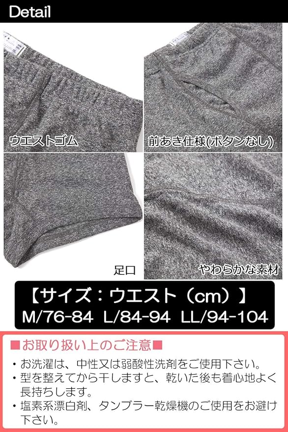 【便利な2枚組】コンビカラー、ダークカラーの2枚組。毎日使う消耗品の尿漏れ対策下着はまとめ買いがお得です。出張の多い方・旅行好きな方・単身赴任の方に。【サイズ】ウエスト:M/76cm~84cm, L/84cm~94cm,LL/94cm~104cm【タイプ】股上深め、レギュラー丈、前開き、ボタンなし【ご確認ください】商品のデザイン・仕様・カラー・価格は予告なく変更する場合があります。生産時期により、デザイン・仕様・カラー・サイズが多少異なる場合があります。同商品、同色におきましても、ロットによって色合い・伸縮性が多少異なる場合があります。商品の写真につきましては、ご覧になる環境(モニター、ブラウザ等)の違いにより、色の見え方が実物と若干異なる場合があります。