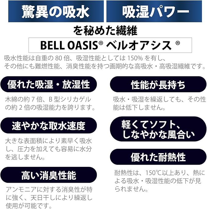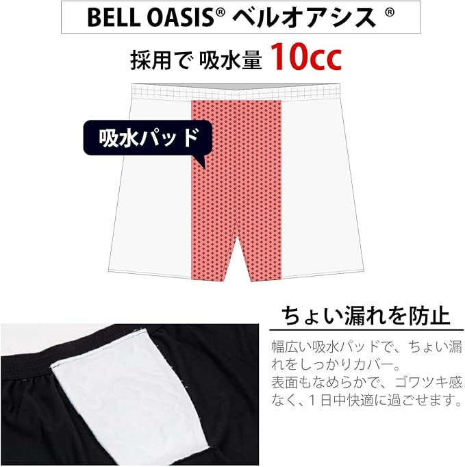 【防水布付きで“もしも”に対応】 前面に防水布を内蔵することで、加齢や体調の変化による軽い“ちょい漏れ”に配慮。 座ったとき・立ち上がったときなど、不意の場面でも安心感をプラスします。 【ベルオアシス入りでムレ対策&消臭サポート】 高機能吸湿素材「ベルオアシス」を使用し、気になるニオイやムレ感を軽減。 長時間の外出や就寝時にも、爽やかな着用感が持続します。