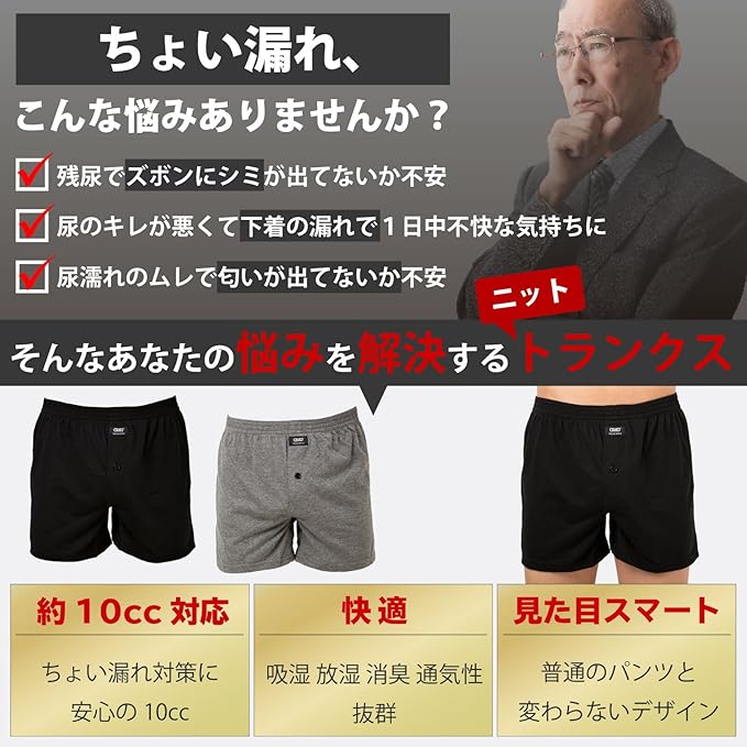 [Ys factory] ニットトランクス メンズ ちょい漏れ 対策 1枚 2枚セット 前開き 消臭 無地 日本製 防水布 吸汗速乾 通気性 シニア 介護 M L LL 3L 4L 大きいサイズ 紳士 下着