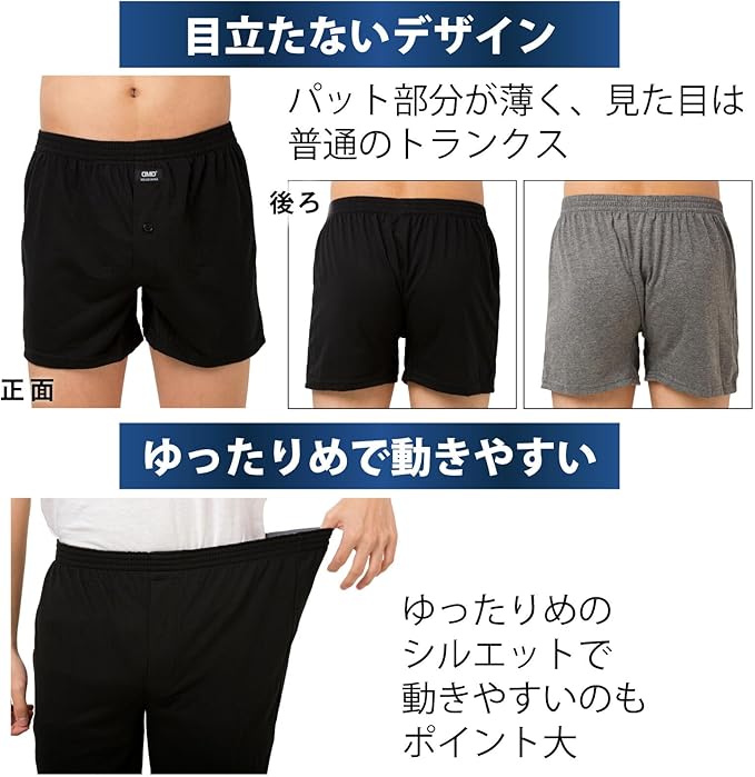 【おすすめの着用シーン】 ■外出中や長時間の移動時に。 ■就寝時の備えに。 ■年齢による不安を感じ始めたときに。 ■出張や旅行の予備インナーとして。 ■父の日やご家族への気配りギフトにも。