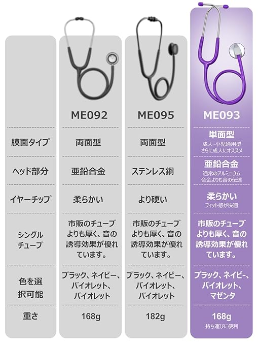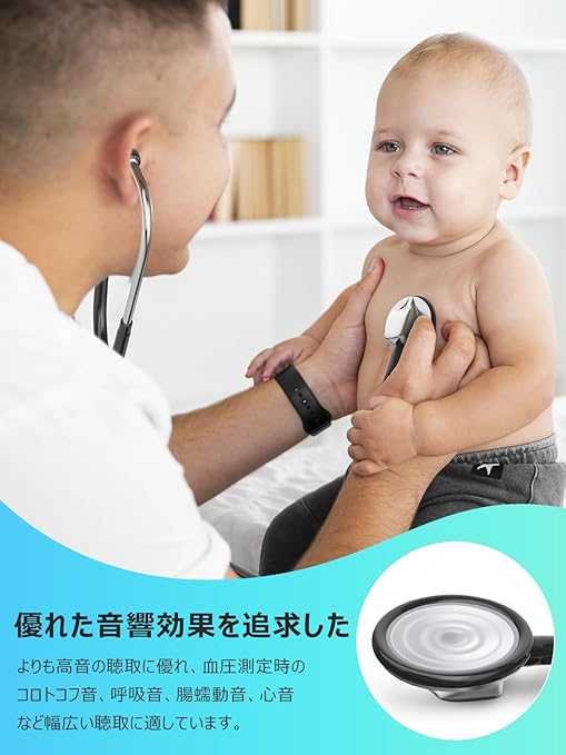 【一般成人・小児】よりも高音の聴取に優れ、血圧測定時のコロトコフ音、呼吸音、腸蠕動音、心音など幅広い聴取に適しています。