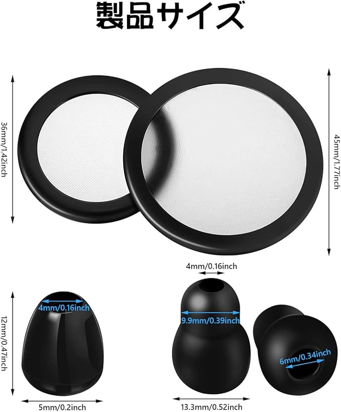 内容物:4 x耳栓、2 xダイアフラム。