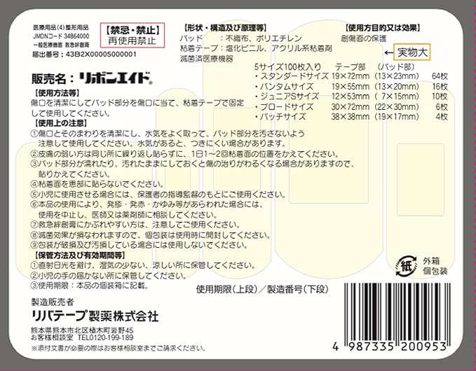 リバテープ製薬 5サイズ救急ばんそうこう 100枚入 日本製