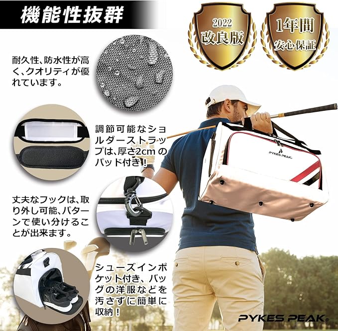 ✅【素材 / カラー / サイズ】素材:ポリエステル/カラー:ブラック、ホワイト、ネイビー、カモフラージュ(1,2) 全5色で豊富に品揃えいたしております。ゴルフウェアやスポーツウェアに合わせたお好みのカラーをお選びください。サイズ:W440 H255 D250mm 約30L収納。PYKES PEAK(パイクスピーク)は国内HOTで、担当スタッフが丁寧に対応させて頂きますので、初期不良や故障など気軽にご連絡くださいませ。