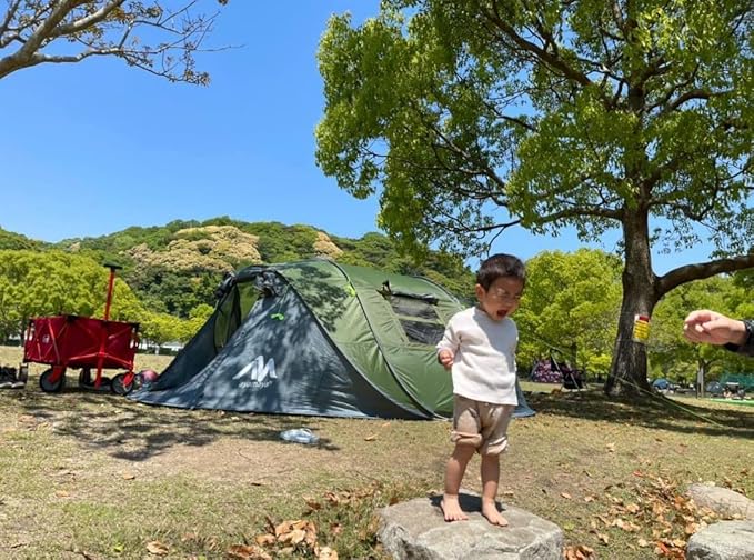 ✅【 投げるだけ で 組み立て可能 】 ▶︎組み立て済みポールを使用しているので、テントを投げるだけで簡単組み立て ▶︎30秒で形が出来上がります。 ▶︎女性一人でも組み立て・撤収可能 ✅【 9ステップで撤収可能 】▶︎わずか9ステップで撤収可能 ▶︎撤収にかかる時間は2分半 わかりやすい “組み立て動画” と “撤収動画” があるから “初心者” でも安心 ✅【 圧倒的な広さ 】 ▶︎ポップアップテントの常識を超える広さ ▶︎家族全員が寝れる ▶︎縦260cm x 横380cm x 高さ130cm ▶︎最大6人収納、快適性を重視すると4人までが過ごしやすいです。 ✅【 便利な前室つき 】▶︎汚れた靴や荷物を置くのに便利 ▶︎前室のグランドシートは取り外し可能 ▶︎前室で簡単な調理もできます。 ☂️【 水の侵入を防ぐ 】▶︎最大耐水圧3,000mm ▶︎雨量の目安 小雨:500mm、中雨:2,000mm .