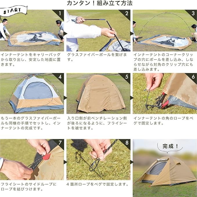 ✅【アウトドアをもっと楽しく、もっと快適に】”より快適によりおしゃれ”にキャンプを楽しんで頂けるよう細部にまでこだわりました。恋人同士と2人だけの時間を過ごしたり、小さなお子様を連れて家族団らんの時間を過ごしたり、友達とワイワイ過ごしたりと2人~3人でのキャンプ時に、マルチに活躍するテントです!