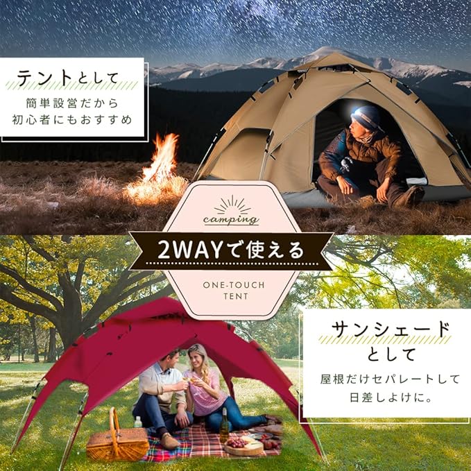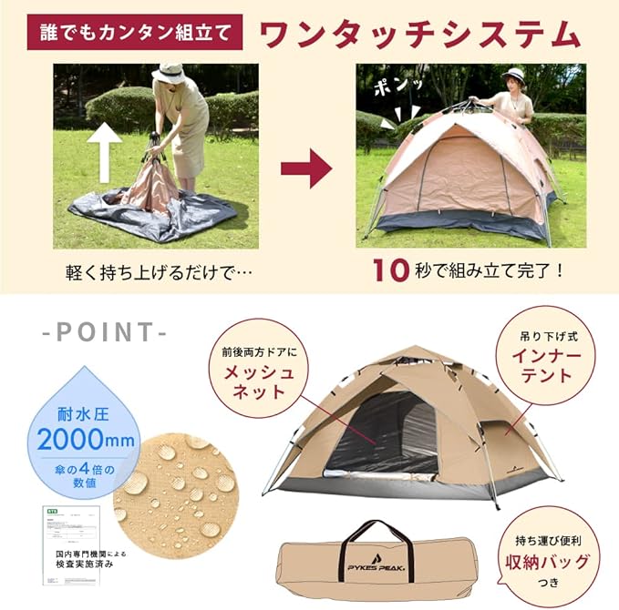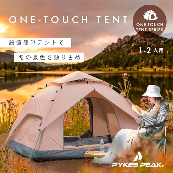 「公式」PYKES PEAK(パイクスピーク) ワンタッチテント「1~2人用/ 2~3人用」「5色 サンシェードモードあり」ONE-TOUCH 1-2P/2-3P キャンプ テント