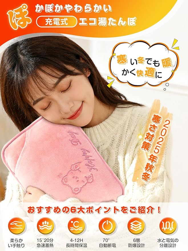 【冬おすすめ防寒グッツ|心癒されるプレゼント】寒い季節になると、手足の冷えや寝室の寒さに悩むことが増えますね。そんなとき、電気代を抑えつつ身体を芯から温める方法として、自然な優しい暖かさに癒されるお勧めの充電式ゆたんぽがあります!従来のゆたんぽのように、お湯の準備や入れ替えの手間がなく、やけどの心配もありません。冷え性対策として、お腹や腰などの体幹部、太もも、足元を効果的に温めることができます。思わず抱きしめたくなるような柔らかな素材感で、体はもちろん、忙しい毎日で疲れた心も優しく包み込んでくれます。実用性と温もりを兼ね備えた本品は、恋人や友人、家族など、大切な人へ贈る冬のプレゼントとしてもぴったりです。