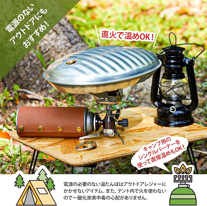 【マルカの湯たんぽ】お湯を使ってあたたまる、トタン湯たんぽの定番、マルカ湯たんぽです。直火OKなので、冬キャンプやアウトドアでもお使いいただけます。