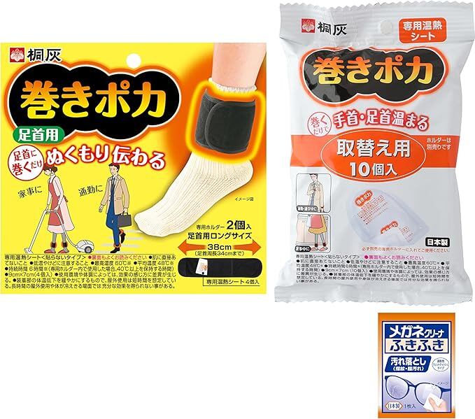 【限定商品】巻きポカ 桐灰化学 足首用 本体1個+替え1個 桐灰 メガネクリーナおまけ付