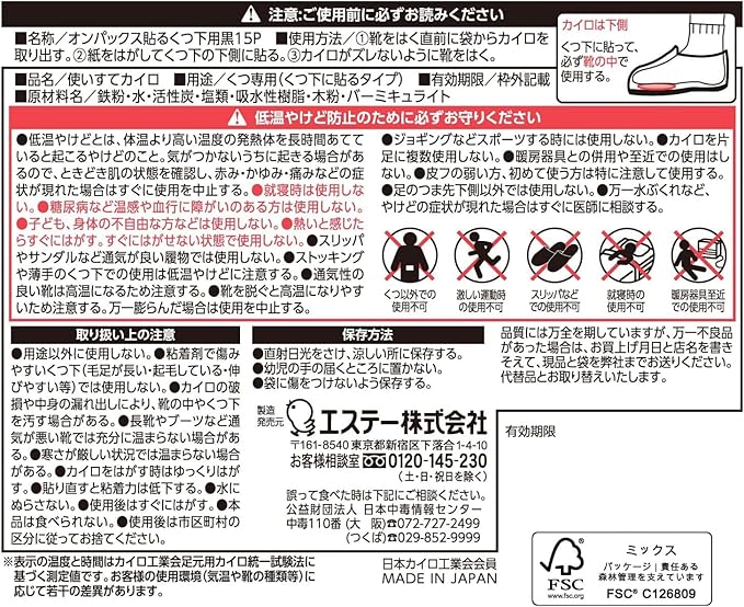 【用途】使いすてカイロ くつ専用(くつ下に貼るタイプ)