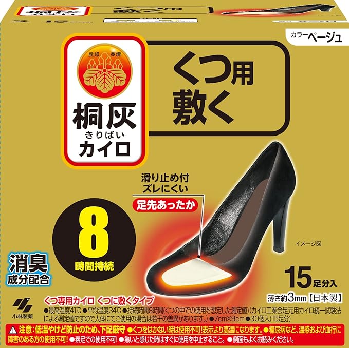 桐灰カイロ くつ用 貼らない カイロ 中敷きタイプ ベージュ 15足入 消臭