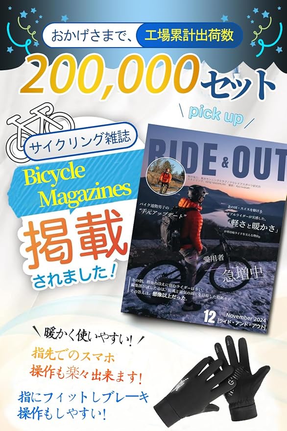 【自転車選手が愛用の防寒手袋】tsyzazoの手袋は、手を入れた時の感触が心地よく、フィット感よく、しっかりと物を掴むことができ、指先でのスマホ操作も楽々出来ます!寒い日に自転車に乗る際の必需品となりました!