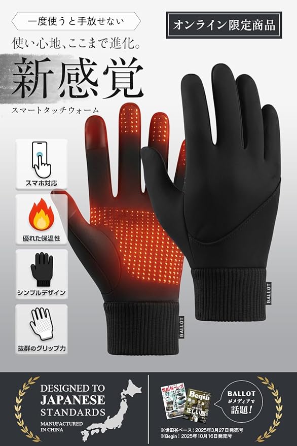 [バロット] 手袋 メンズ 防寒手袋 スマホ対応 裏起毛 防水 てぶくろ 男女兼用