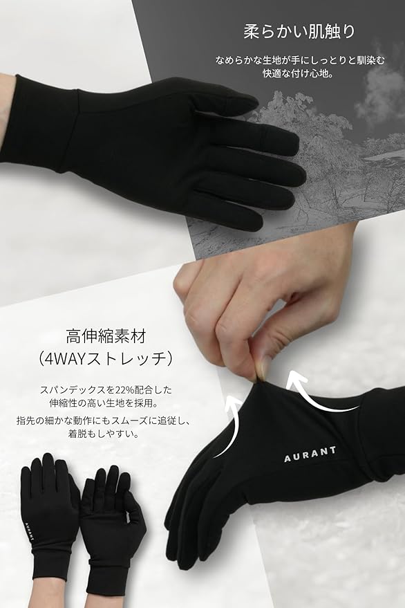 [AURANT] インナーグローブ 薄型 速乾 伸縮性 軽量 スマホ操作 タッチスクリーン対応 防風 手袋 スキー スノーボード バイク 登山 釣り 通勤通学 日焼け防止 作業用 メンズ レディース