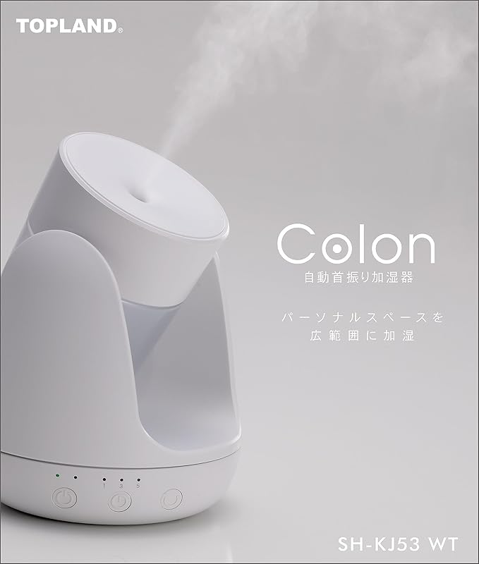 トップランド TOPLAND 加湿器 超音波式 卓上 USB 小型 自動首振り機能付き 上下角度調節 オフタイマー「倒れても水がこぼれない」間欠モード搭載 ホワイト SH-KJ53WT