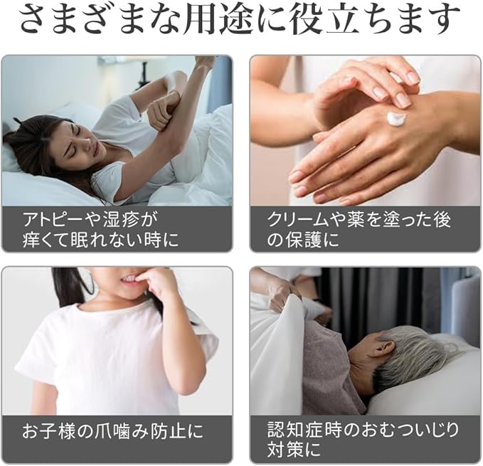 ✅【肌に優しい綿素材】素材は肌触りの良い綿100%。体などへのかきむしりだけでなく、手荒れ防止や子供のつめ噛み、おむついじり防止等にも役立ちます。