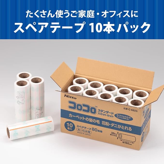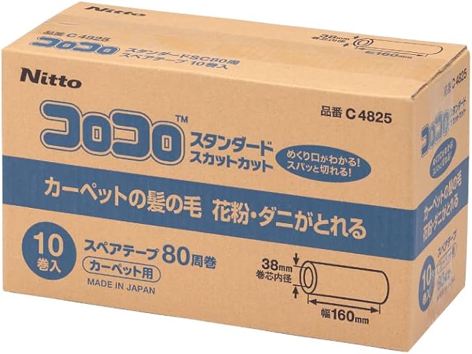 ニトムズ コロコロ スペアテープ スタンダードSC スパッと切れる カーペット対応 テープ 替え ダニ 花粉 80周 10巻入 160㎜幅 C4825