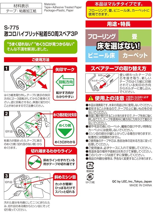 レック 激コロ フローリング対応 粘着テープ 50周 スペア 6個入 / 切りやすい 斜めカット/カーペットクリーナー