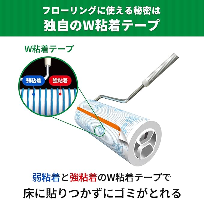毛が巻きついても紙が縦に破けず、フローリングでも床に貼りつきません。