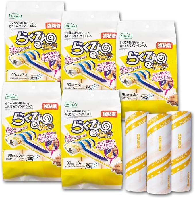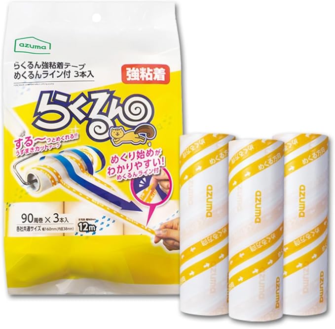 アズマ 大容量パック らくるん強粘着テープ3本入 5袋IN オンライン限定 90周3本 5袋