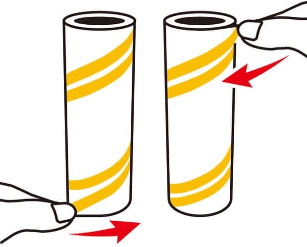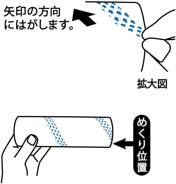 【どちらからでもめくれます】 粘着テープはうずまきカットのどちらからでもスムーズにめくれます。