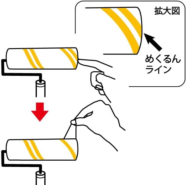 「らく」に「くるん」とめくれる強粘着テープです。通常の粘着テープはめくるのに時間がかかりますが、このテープは違います ! ゴミを取ったらテープの端を持って引っ張るだけ。テープを切り離さず気持ち良く「くるん」とめくれます。