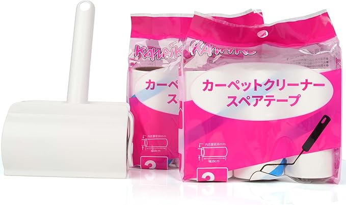 KAWAIKO カーペットクリーナー 粘着クリーナー 斜めカット 100mm x 60周 強力粘着 ホコリ取り ペットの毛取り 衣類等々掃除便利 (本体1個+スペア6個)