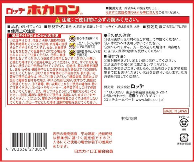 スペック:最高温度68 ℃ 平均温度:54 ℃ 持続時間20時間(40 ℃以上を保持し、持続する時間)