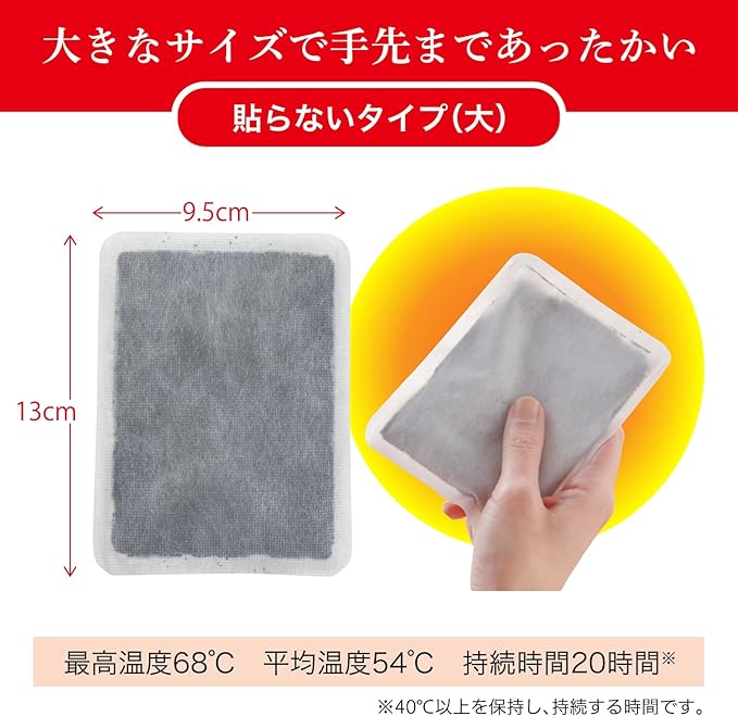 手の平で温かさが広がる貼らないホカロン 通勤 通学 レジャー スポーツ観戦など手が悴みやすい時におすすめです