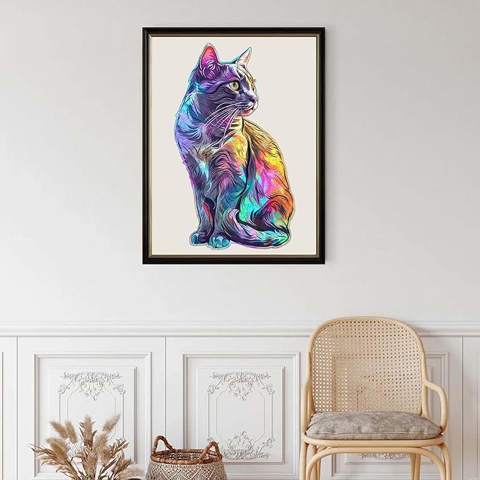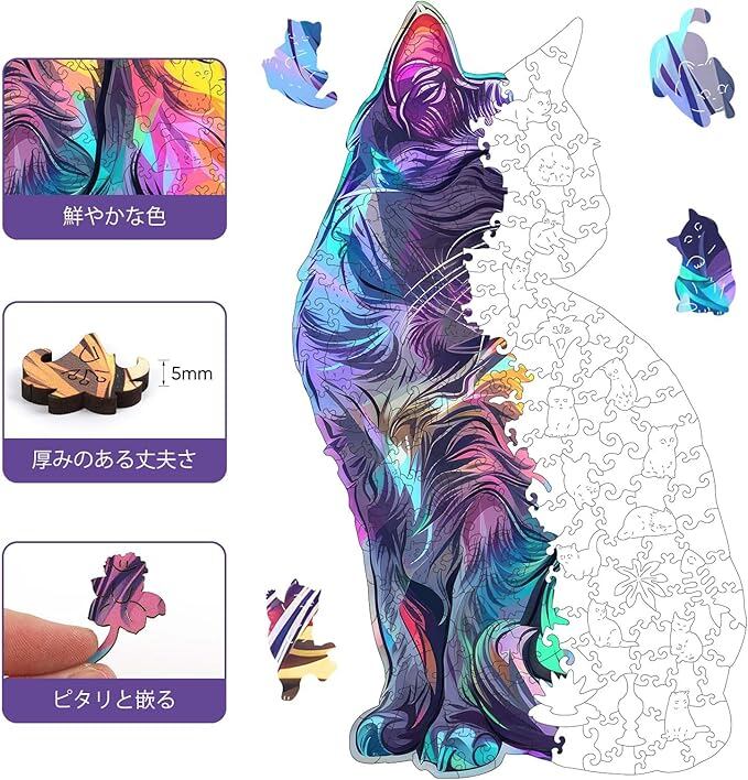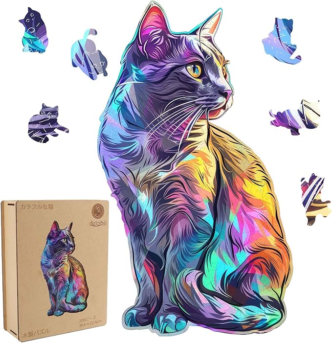 Delobil ジグソーパズル 木製 5mm厚 猫 独特な形状のピース レーザーカットで何度も楽しめる 大人向けパズル 200ピース 難しい おしゃれ インテリア 動物 プレゼント 永久に遊べるパズル 専用透明シート付(38.6 22.4 cm)