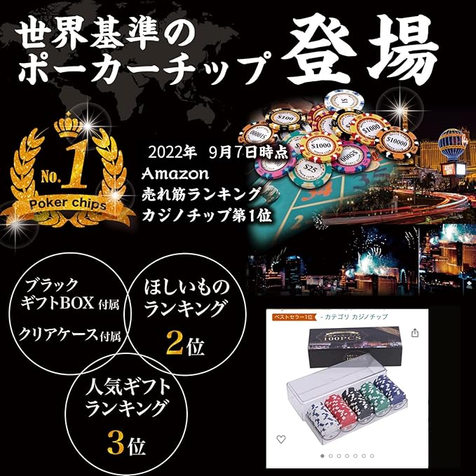 ✅【 アルミケース付き 】アルミケース付きなので保管や持ち運びの最適。6人以上だと500枚、6人未満だと300枚、200枚、100枚がおススメです。 アルミケースの中はセットになっているので遊びたいときにすぐに使える、遊び終わったらケース付きなのでバラバラにならずかたずけられます。 カジノ ポーカーなどお楽しみください。ポーカー、トランプ、麻雀、カジノ、ルーレット、バカラ、ブラックジャック様々なゲームに愛用されています。
