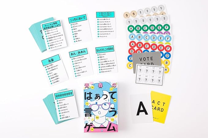 同じ台詞をそれぞれ与えられたシチュエーションで演じ、どれを演じているか当て合います。身振り手振りは原則禁止、声と表情だけで表現します。青春のよろこびや恥ずかしさをワイワイ楽しめて、単品でもシリーズと合わせても遊べます。